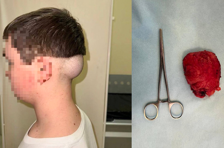 В Научно-исследовательский институт неотложной детской хирургии и травматологии обратились родители подростка-девятиклассника. У молодого человека на затылке они обнаружили огромное образование размером с теннисный мяч. Обследование показало, что образование является липомой — «жировым комком».